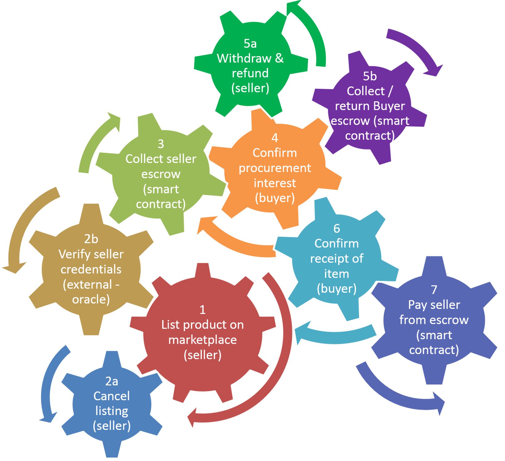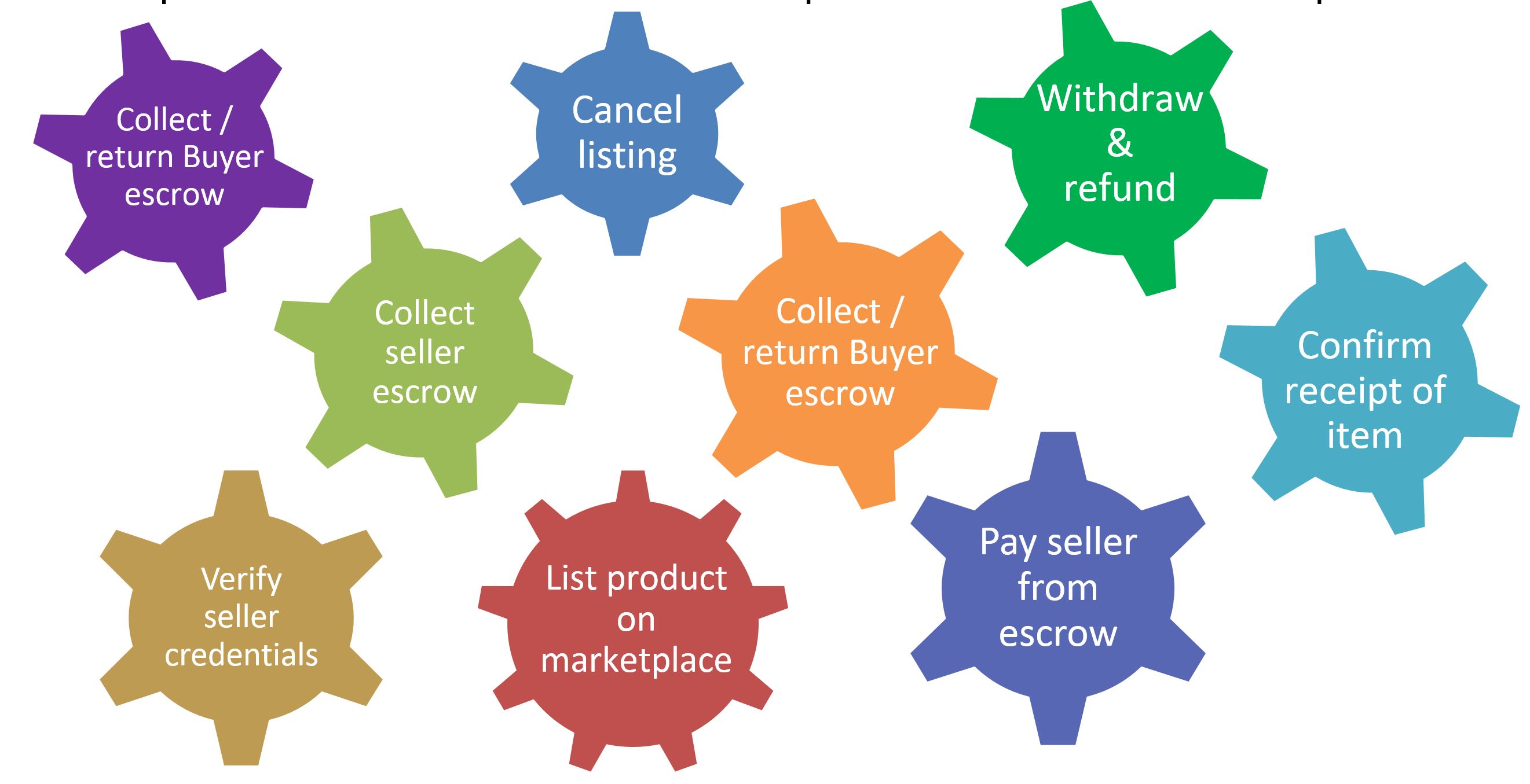 - Seller can cancel the market trade after bid/buy by refunding the seller – ConfirmRefund